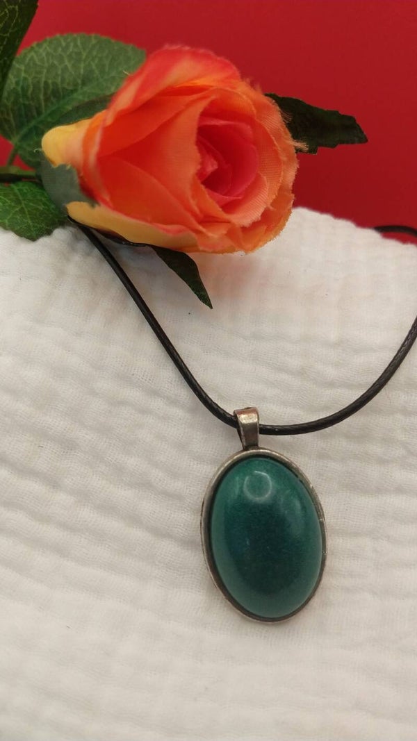 This epoxy resin hanger is made to look like Malachite. It looks old and slightly worn for that authentic ancient treasure feeling