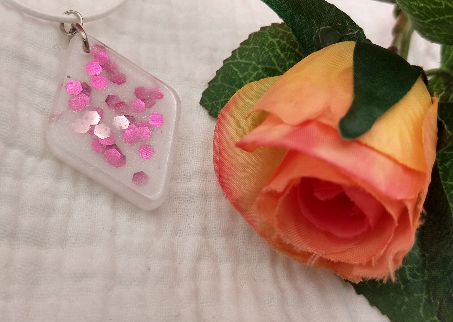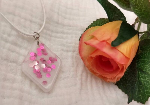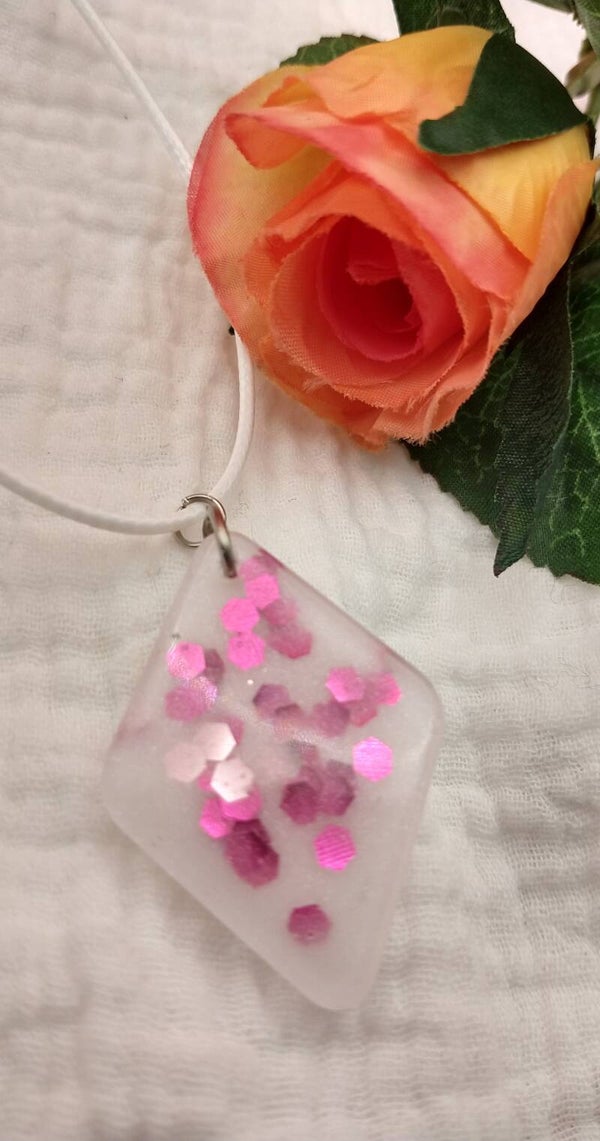 This white pendant has big pink glitters, what else would you need?
