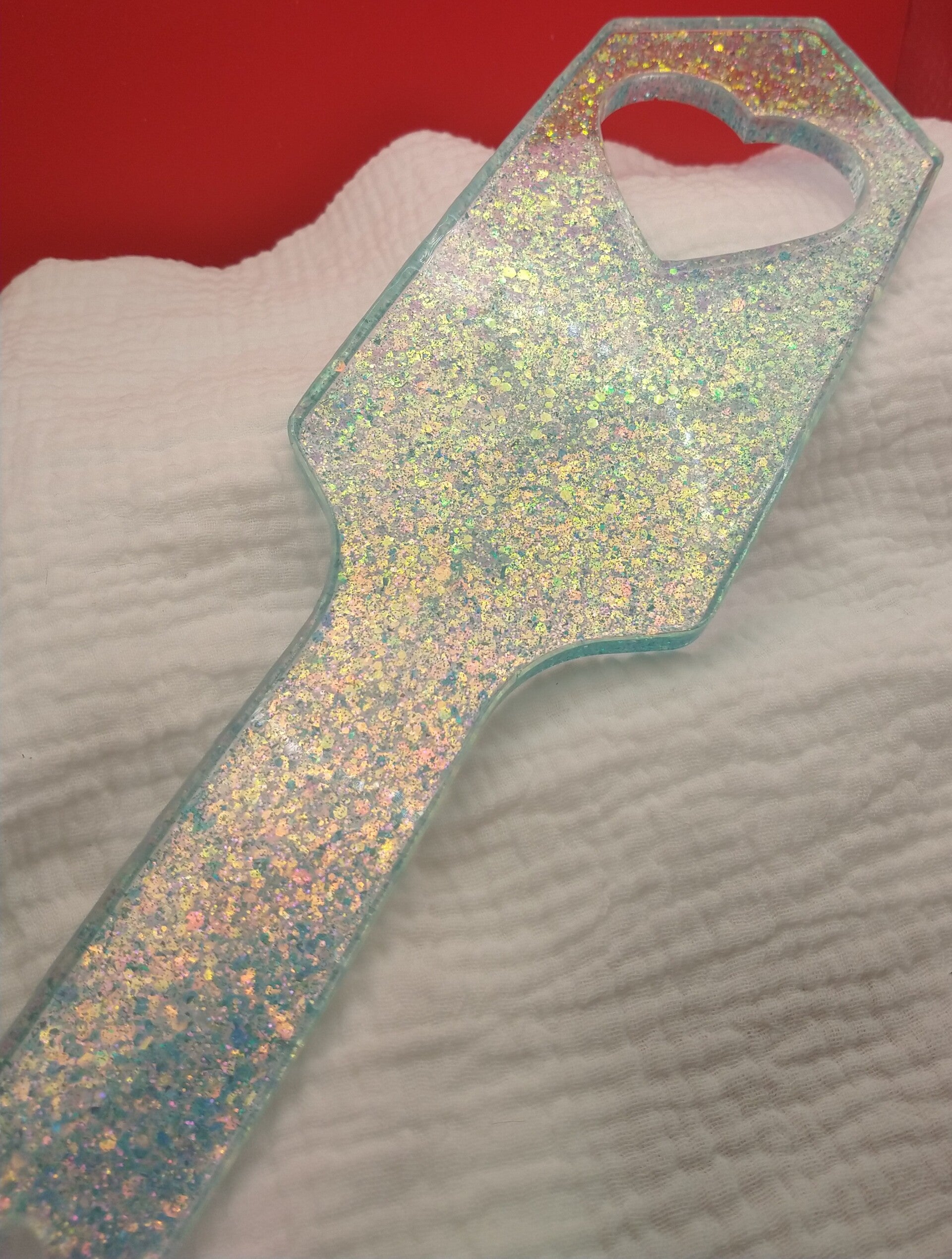 this paddle has holo glitter inside that chances colour but mostly has a blueish hue to it.