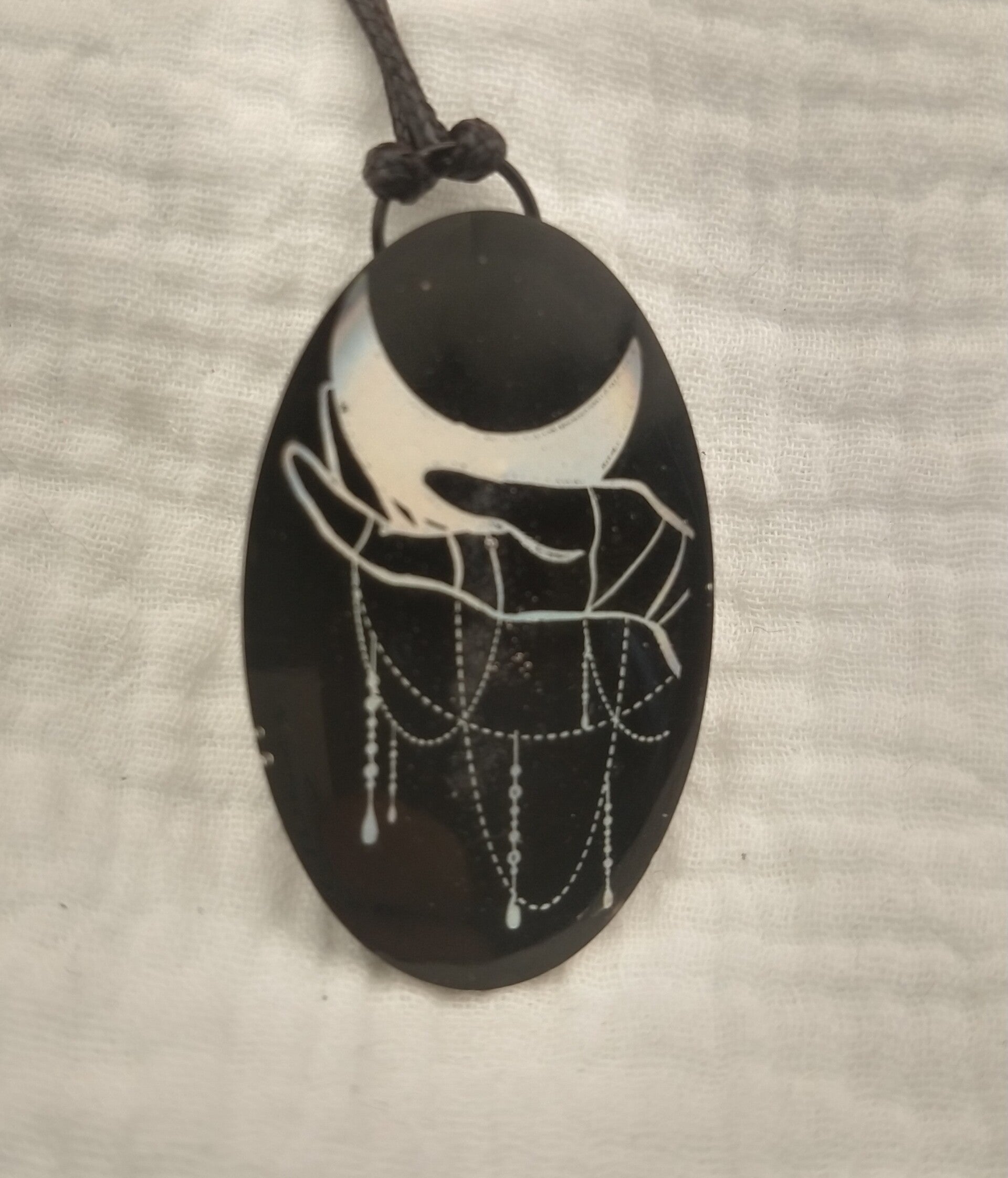 This black coloured amulet gives you the mysteries of the moon in the palm of your hand.