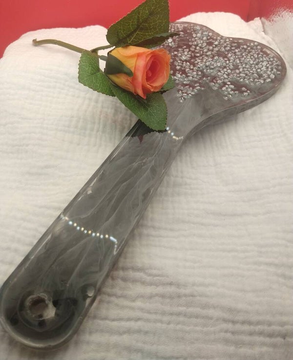 This classy design resembles smoke inside the paddle. It has a smooth side and a side with little stones for the extra feels.