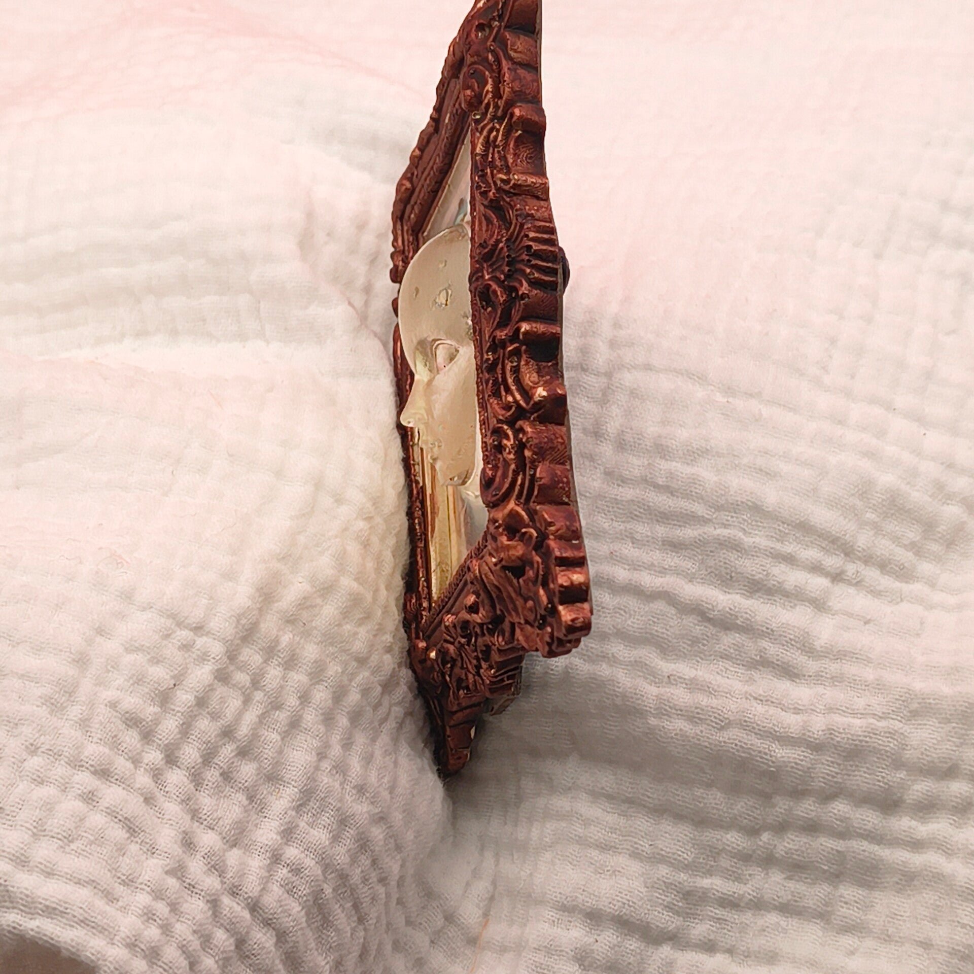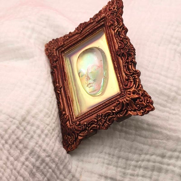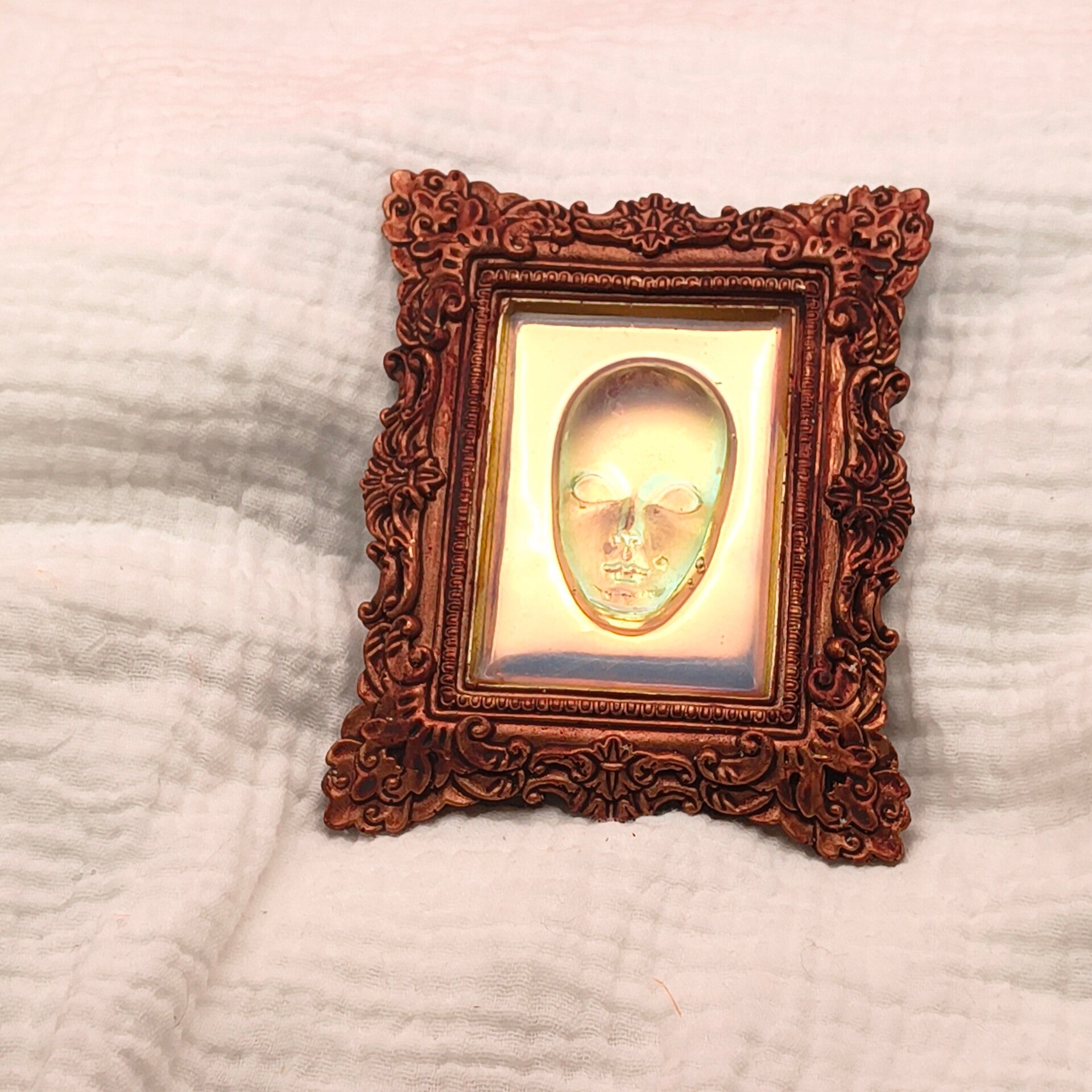 This item I procured from a old an haunted house. The seemingly normal mirror was posessed with this ghost trying to escape its eternal bonds. Are you brave enough to buy this?Size:8,5 cm by 2,5 cm by 1,5 cm