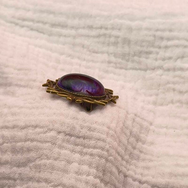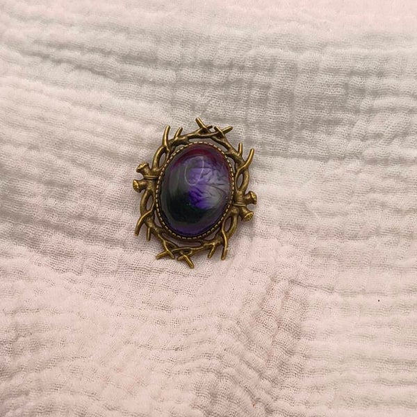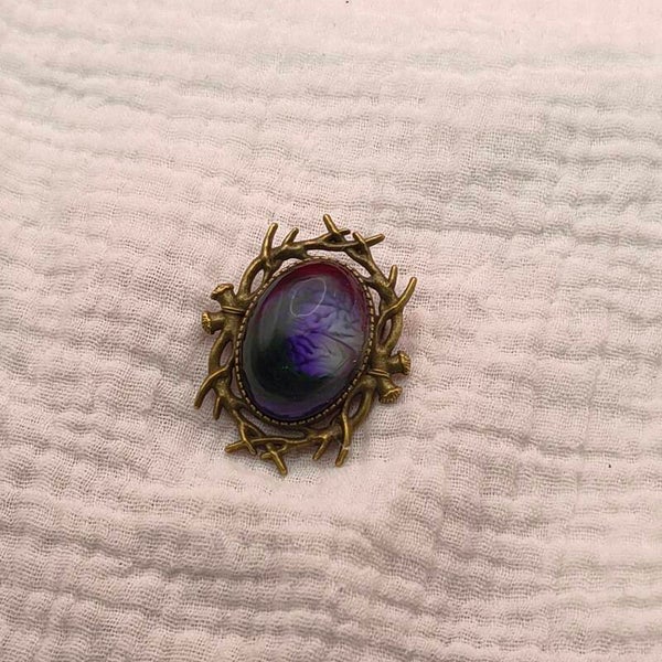 This small brooch is vibrant in colours and elegant in design. The setting is beautiful and mystical envoking times long past. The colours inside really shine in the daylight