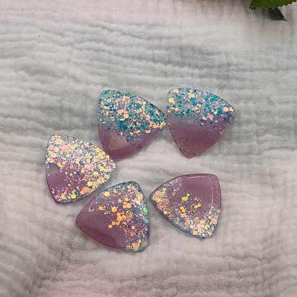 This beautiful and unique set of guitar picks is glittery with a purple translucent tip. It will glow up every performance and is a great gift!